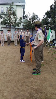 今日は弥栄集会です。6団全隊がそろい、上進式を行われ、